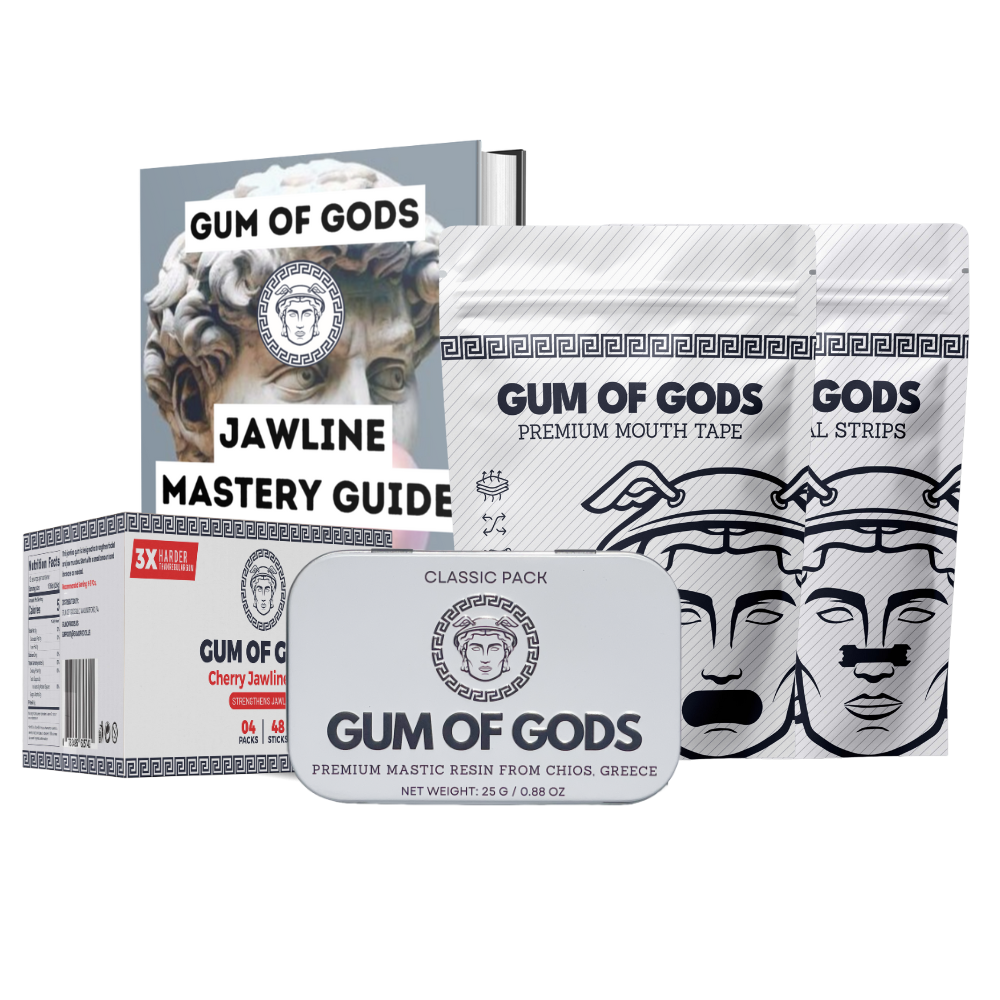 Our best-selling Aesthetic of Gods Bundle featuring mastic gum, nasal strips, and mouth tape is designed to restore symmetry, support oral posture, and help you look and feel your best 100% naturally.